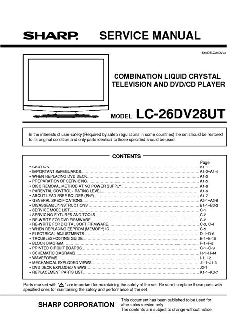 At present you are looking for an Sharp Lc 26dv28ut Service Manual Repair Guide example that will we provide here in some type of document formats such as PDF, Doc, Strength Point, and also images that will will make it simpler for you to create an Sharp Lc 26dv28ut Service Manual Repair Guide yourself. For a clearer look, you may open a few examples below. Each of the illustrations about Sharp Lc 26dv28ut Service Manual Repair Guide on this website, we get from a number of sources so you could create a better record of your own.